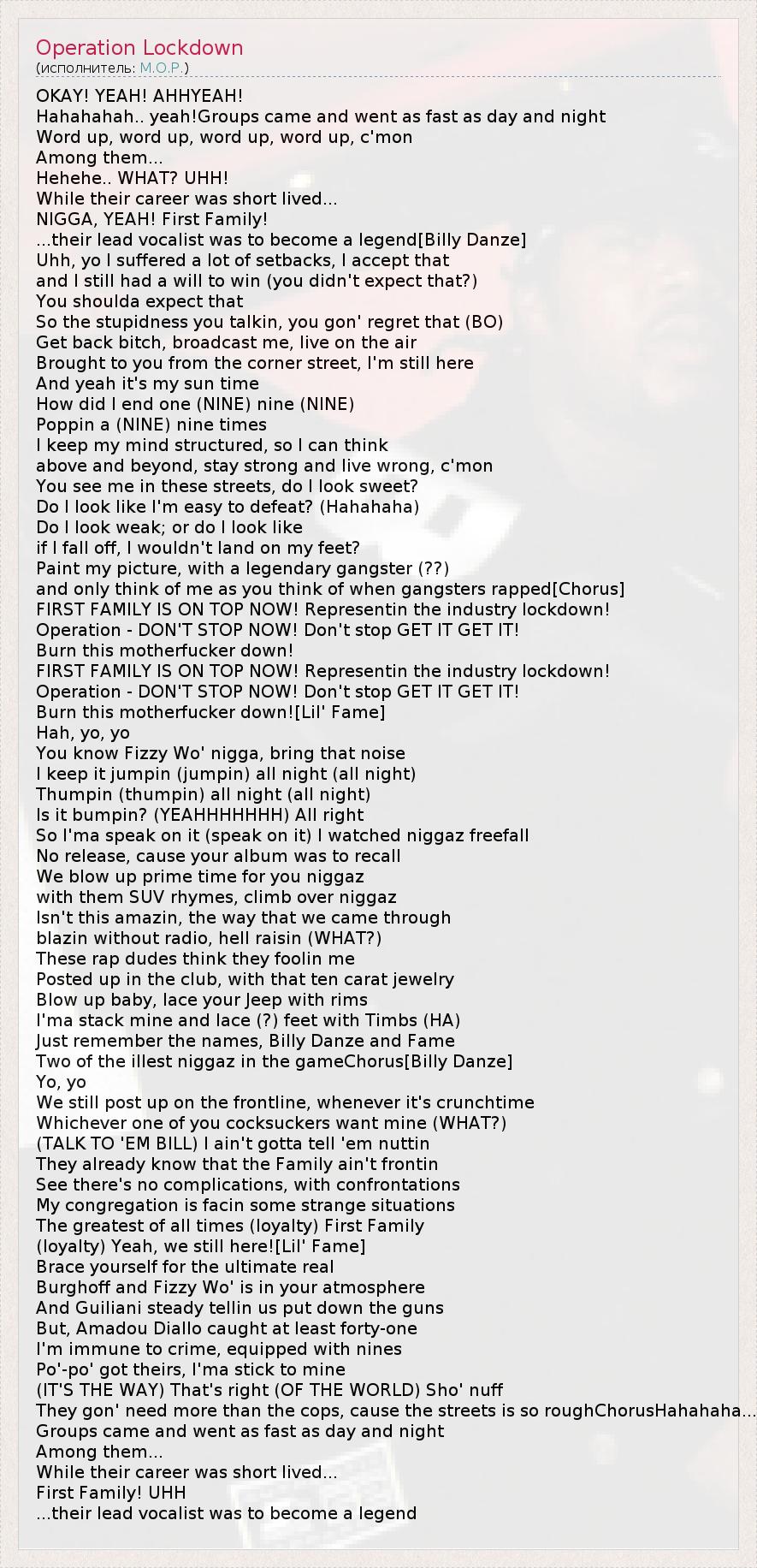 А как ты думаешь, о чем песня "Operation Lockdown" ?