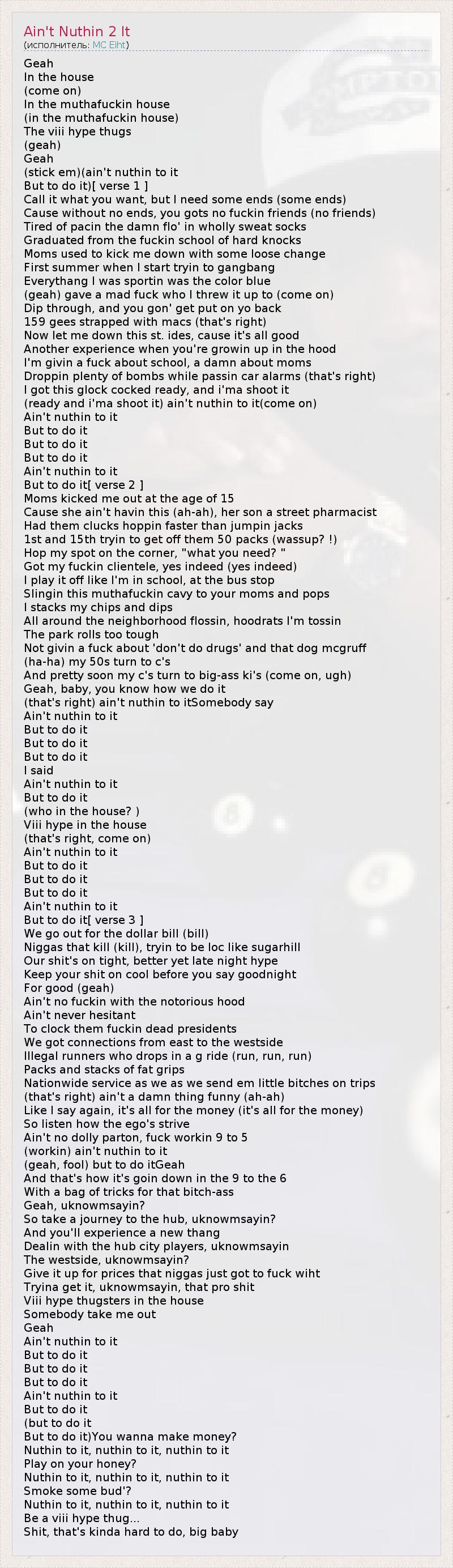 А как ты думаешь, о чем песня "Ain't Nuthin 2 It" ?