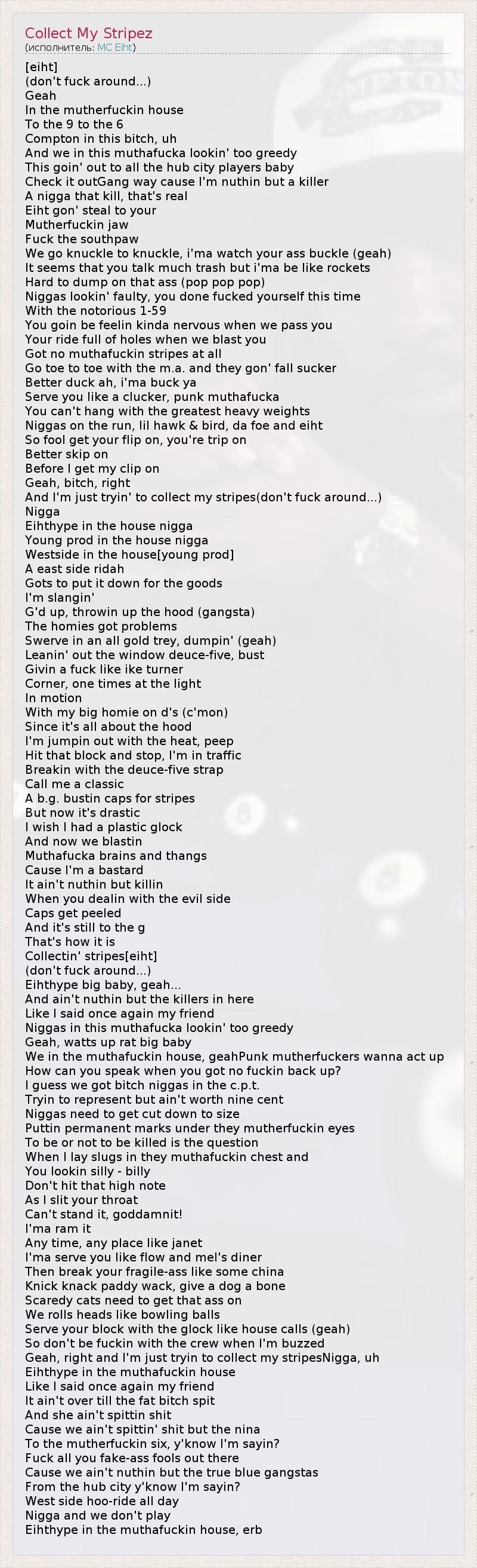 А как ты думаешь, о чем песня "Collect My Stripez" ?