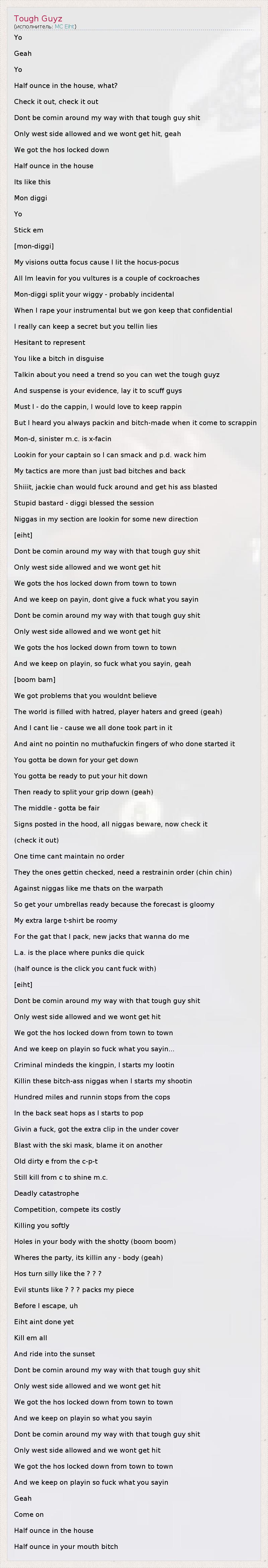 А как ты думаешь, о чем песня "Tough Guyz" ?