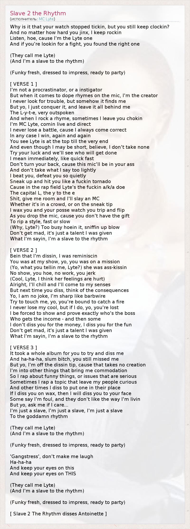 А как ты думаешь, о чем песня "Slave 2 the Rhythm" ?