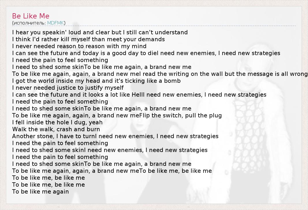 А как ты думаешь, о чем песня "Be Like Me" ?