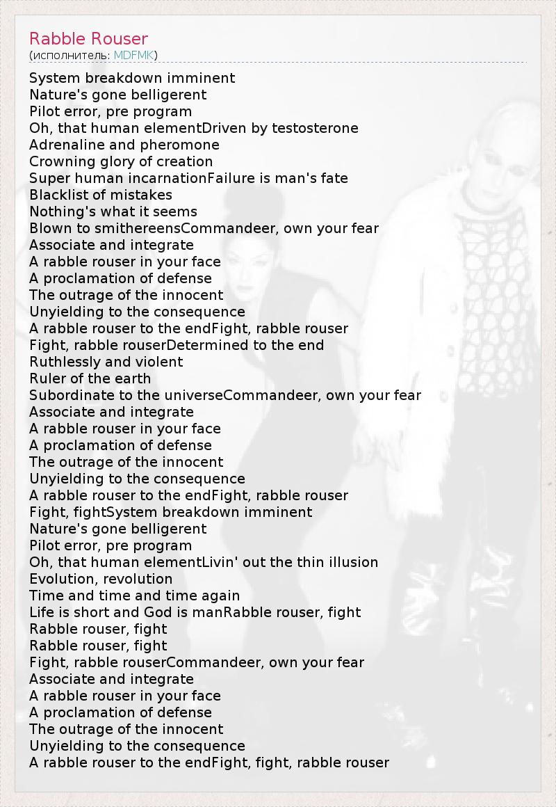 А как ты думаешь, о чем песня "Rabble Rouser" ?