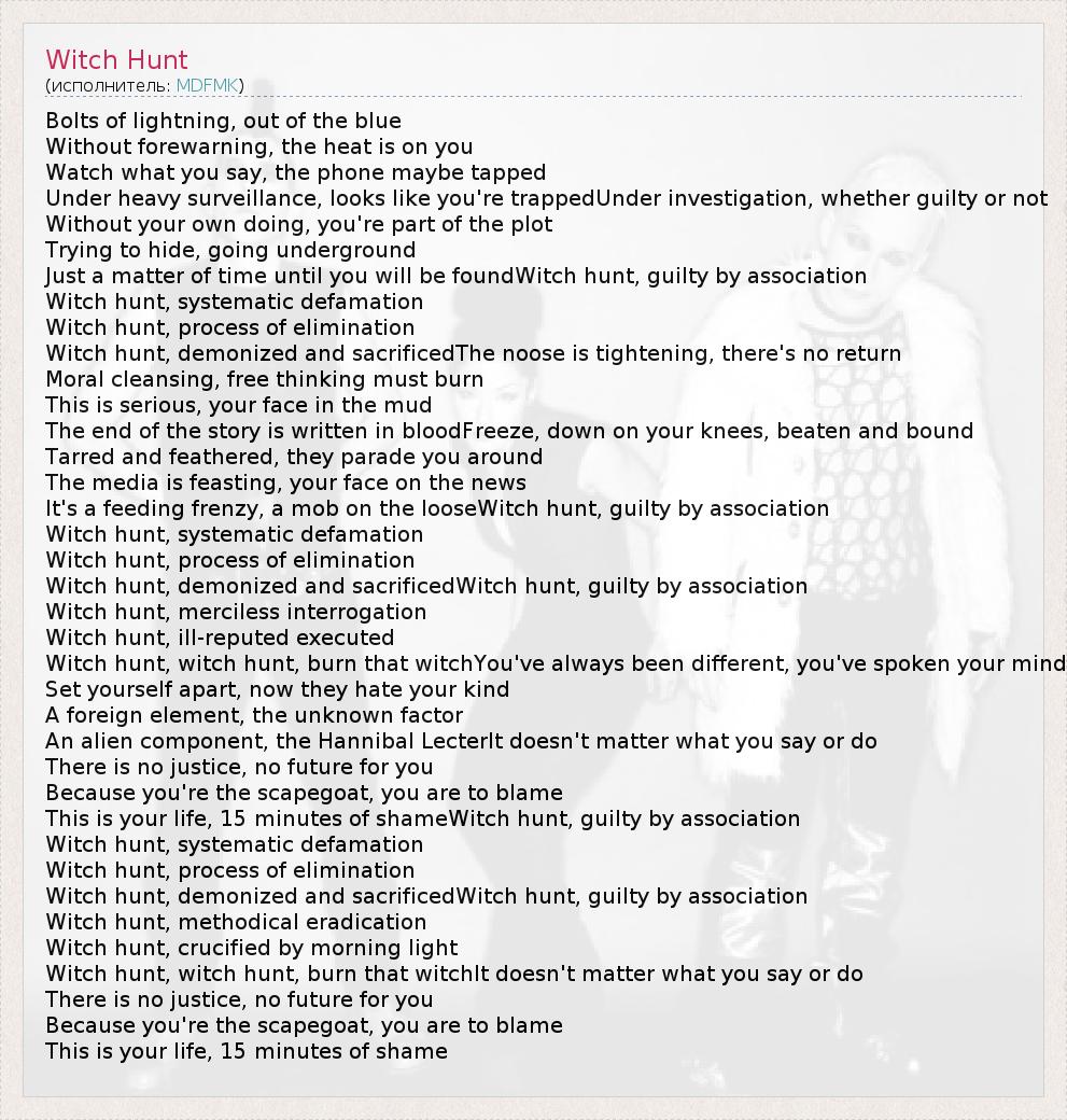 А как ты думаешь, о чем песня "Witch Hunt" ?