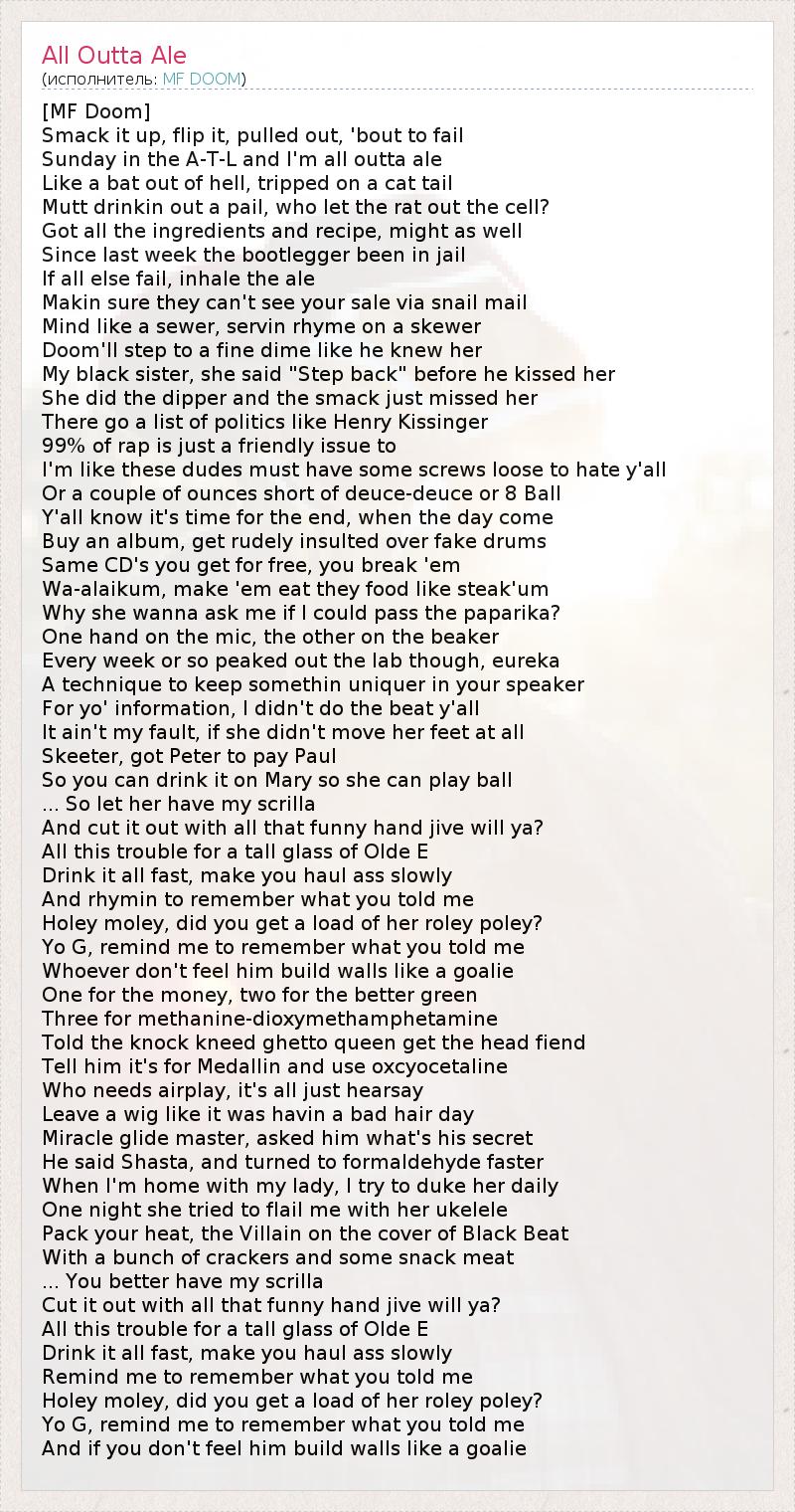 А как ты думаешь, о чем песня "All Outta Ale" ?
