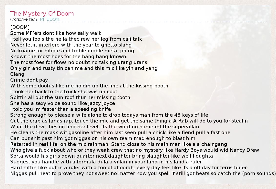 А как ты думаешь, о чем песня "The Mystery Of Doom" ?
