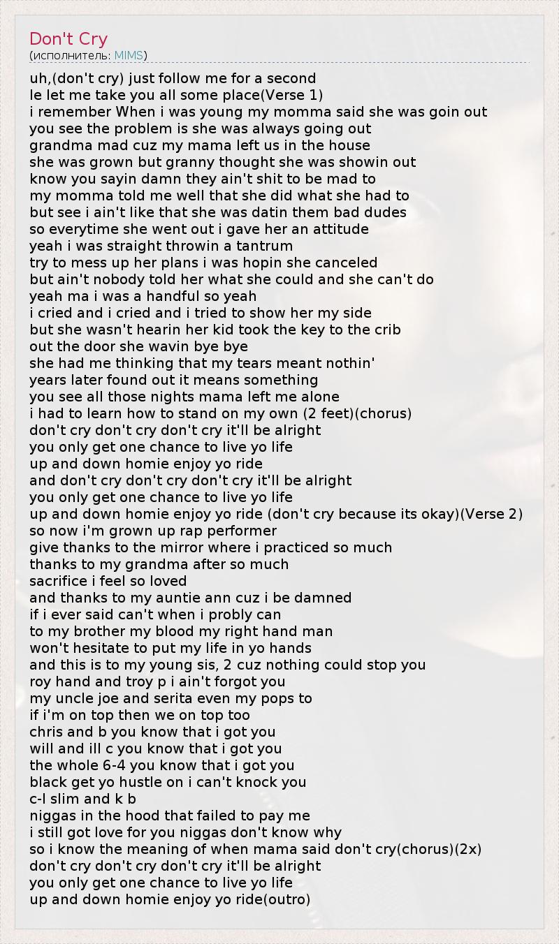 А как ты думаешь, о чем песня "Don't Cry" ?