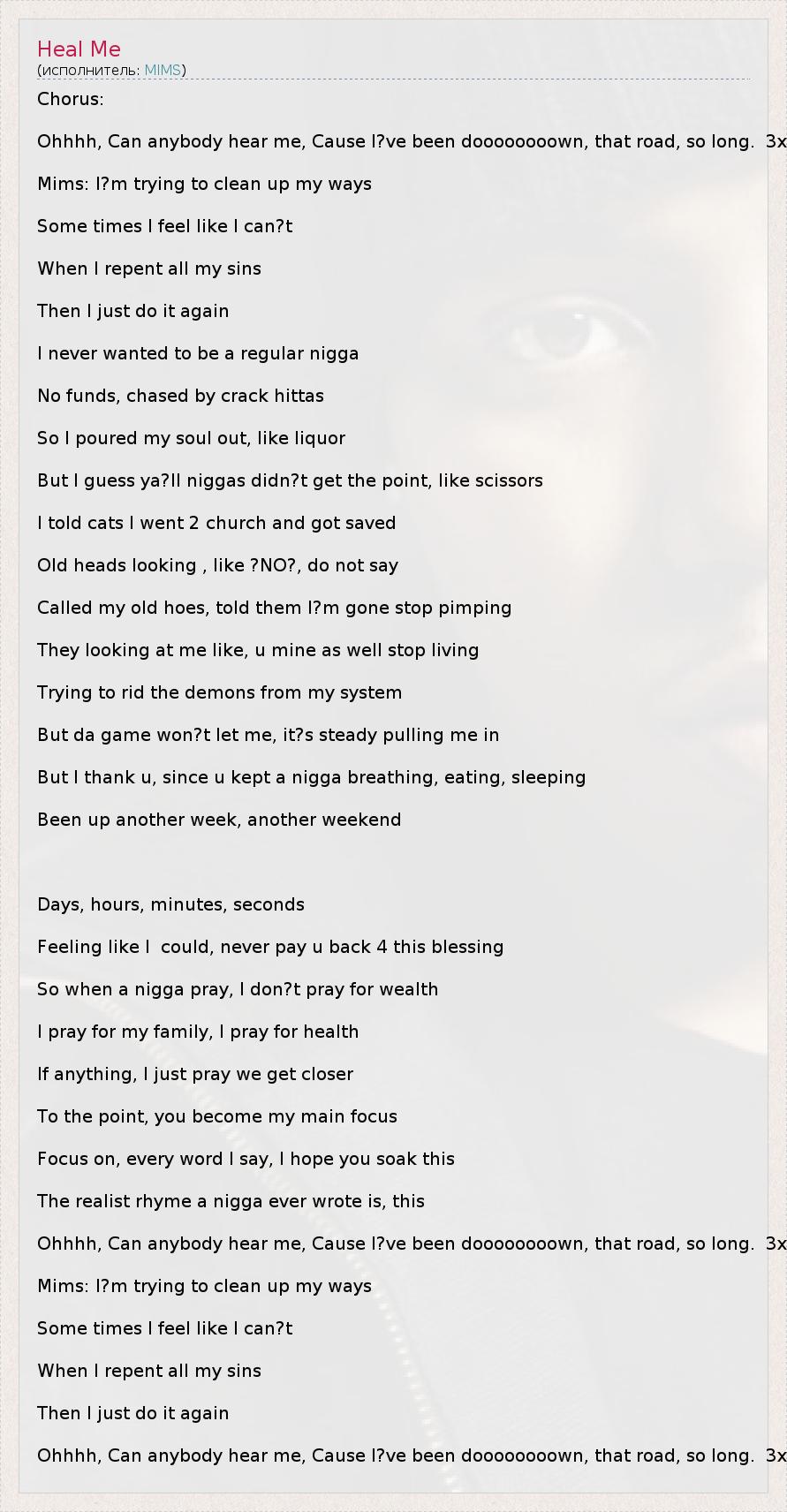 But I thank u, since u kept a nigga breathing, eating, sleeping