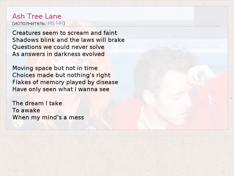 А как ты думаешь, о чем песня "Ash Tree Lane" ?