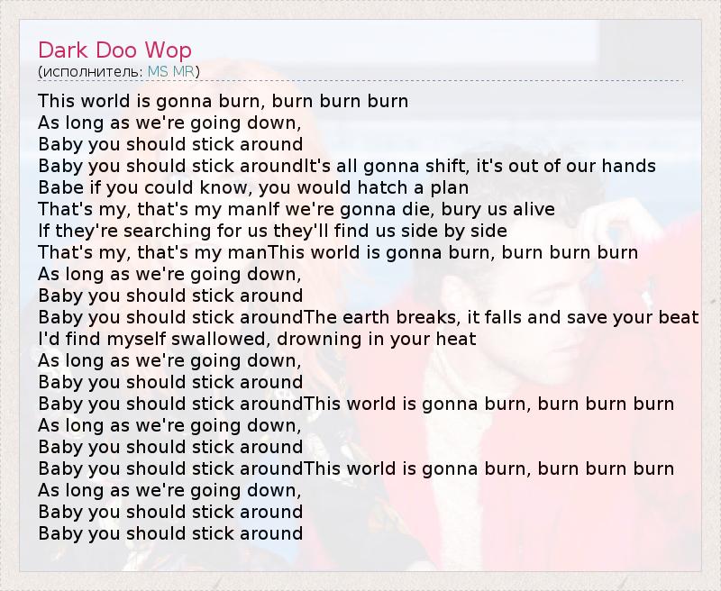 А как ты думаешь, о чем песня "Dark Doo Wop" ?