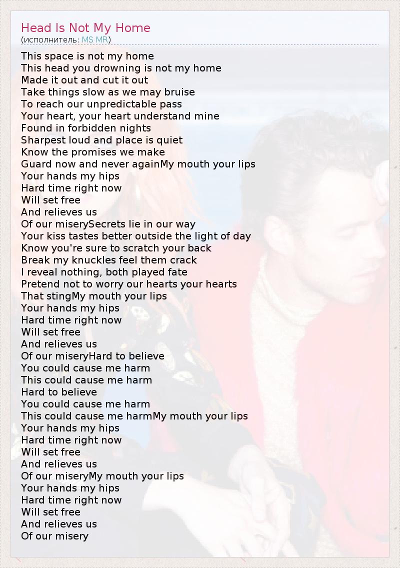 А как ты думаешь, о чем песня "Head Is Not My Home" ?