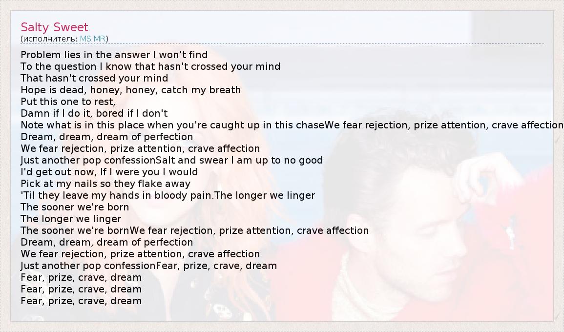 А как ты думаешь, о чем песня "Salty Sweet" ?