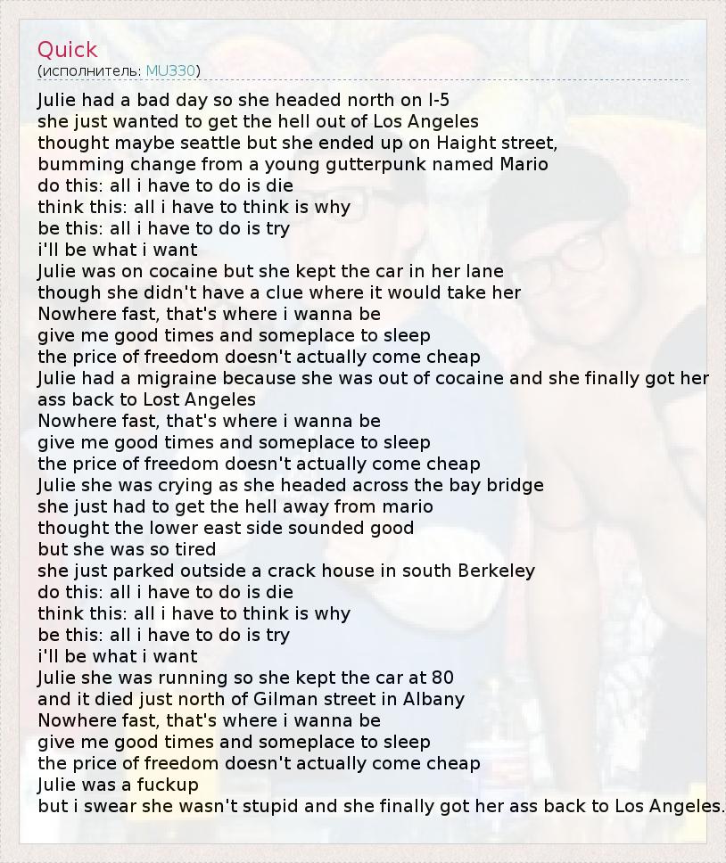 А как ты думаешь, о чем песня "Quick" ?