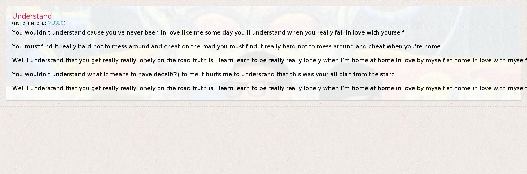 Это интересно:MU330 – ска-панк-группа. Образовалась в 1988 в Сент-Луисе, штат Миссури. Первоначальный состав группы собрался в St. Louis University High School в кабинете 330 (отсюда и название).