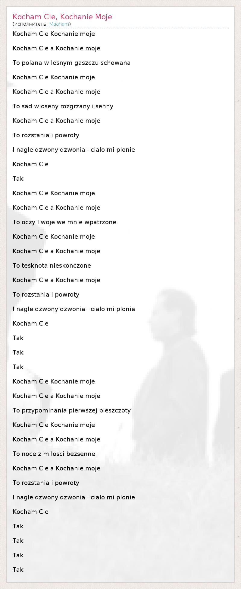 ГлавнаяИсполнителиMaanamKocham Cie, Kochanie Moje