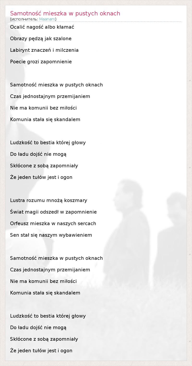 ГлавнаяИсполнителиMaanamSamotność mieszka w pustych oknach