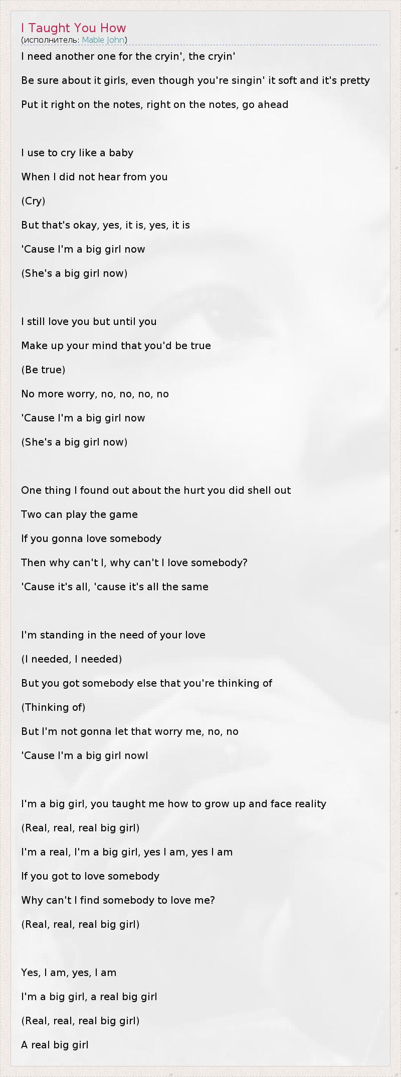 I'm a big girl, you taught me how to grow up and face reality