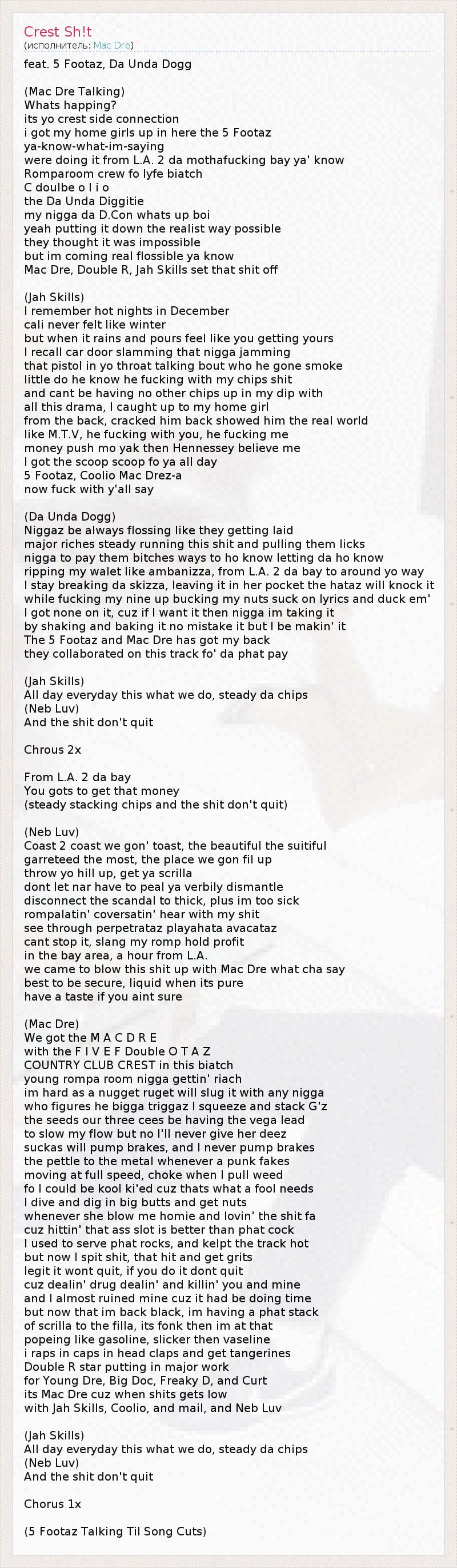 А как ты думаешь, о чем песня "Crest Sh!t" ?