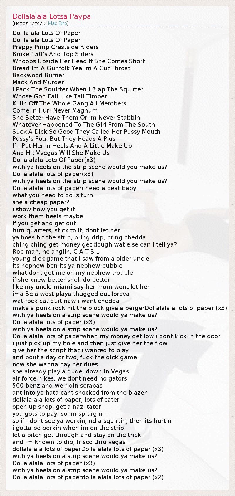 ГлавнаяИсполнителиMac DreDollalalala Lotsa Paypa