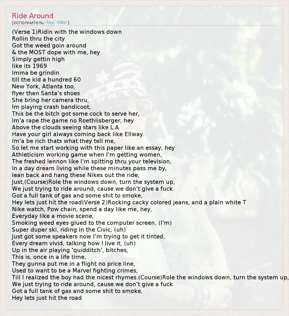 Это интересно:Mac Miller - молодой рэппер из города Питтсбург, Пенсильвания. Пишет тексты к собственным трекам, занимается продюсированием и регулярно появляется в качестве модели во многих лук-буках именитых streetwear брендов. Парень живет культурой и это чувствуется по энергетике в его треках. Оба релиза идут с приставкой mixtape, но это скорее street-альбомы, т.к. есть треки спродюсированные самим исполнителем... продолжение