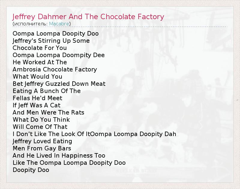 ГлавнаяИсполнителиMacabreJeffrey Dahmer And The Chocolate Factory