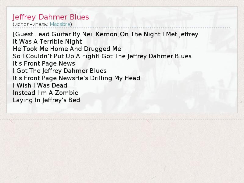 ГлавнаяИсполнителиMacabreJeffrey Dahmer Blues