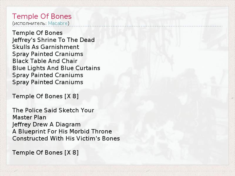 А как ты думаешь, о чем песня "Temple Of Bones" ?
