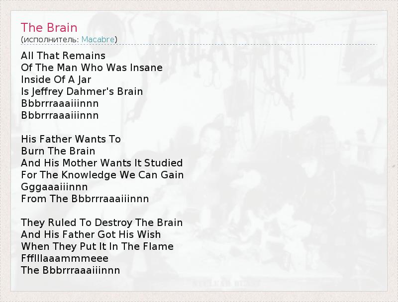 А как ты думаешь, о чем песня "The Brain" ?