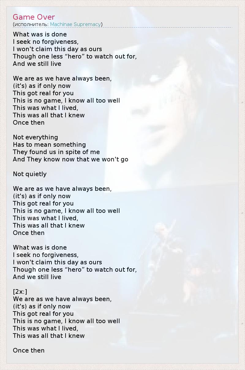 А как ты думаешь, о чем песня "Game Over" ?