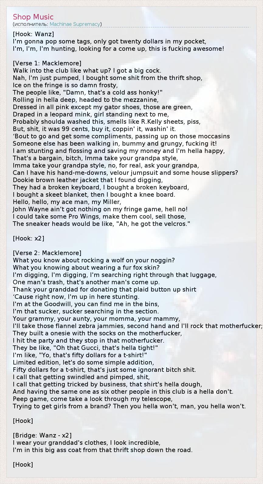 А как ты думаешь, о чем песня "Shop Music" ?