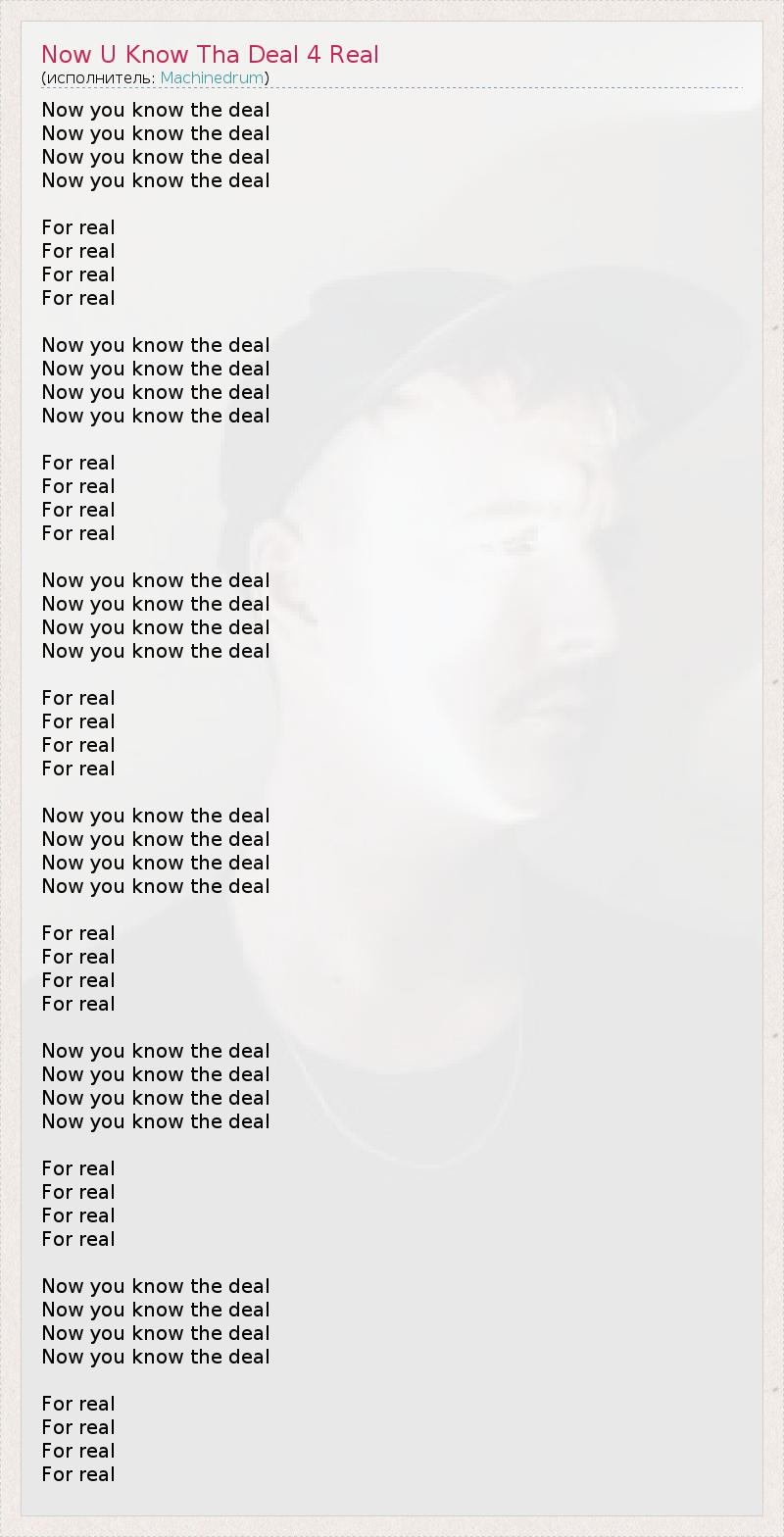 А как ты думаешь, о чем песня "Now U Know Tha Deal 4 Real" ?