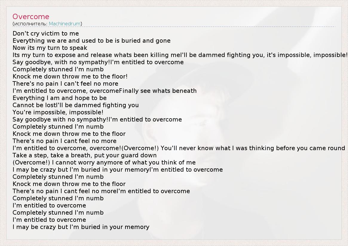 I'm entitled to overcome, overcome!(Overcome!) You'll never know what I was thinking before you came round