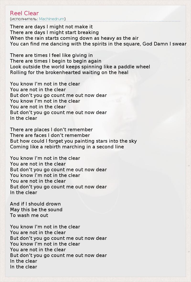 А как ты думаешь, о чем песня "Reel Clear" ?
