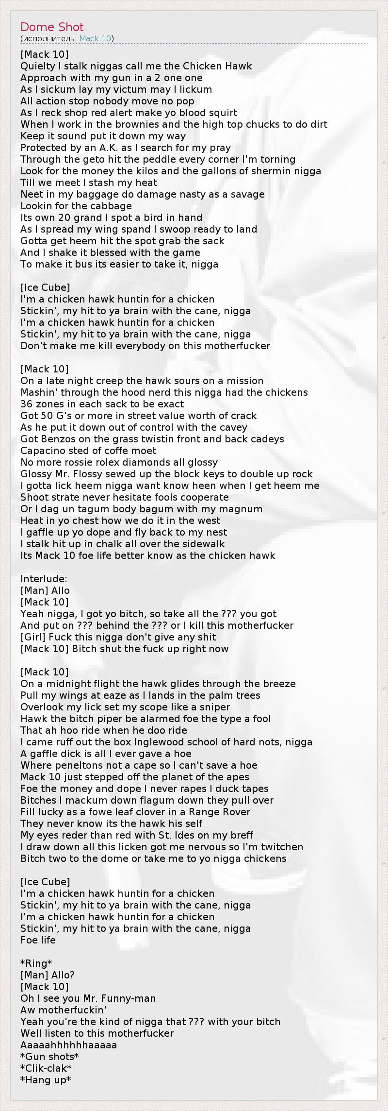 And put on ??? behind the ??? or I kill this motherfucker
