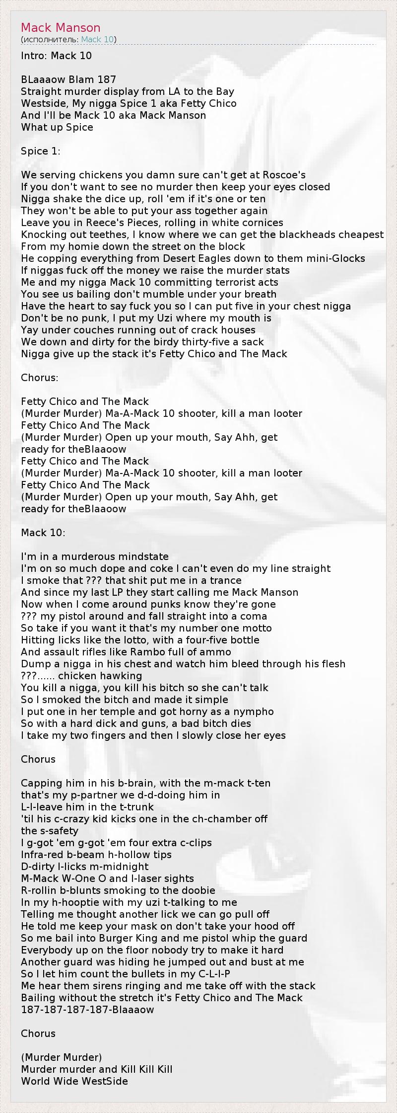А как ты думаешь, о чем песня "Mack Manson" ?