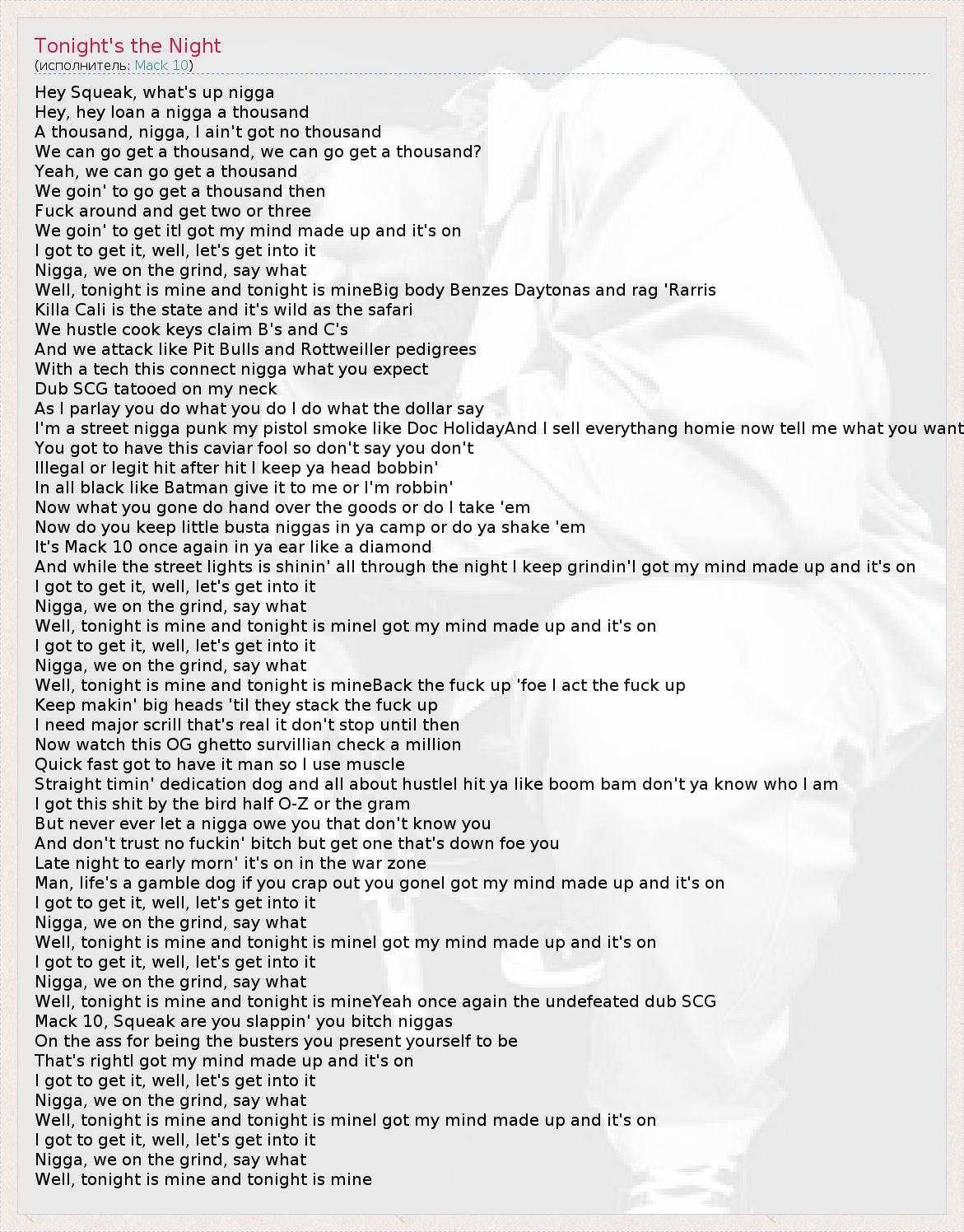 Well, tonight is mine and tonight is mineBack the fuck up 'foe I act the fuck up