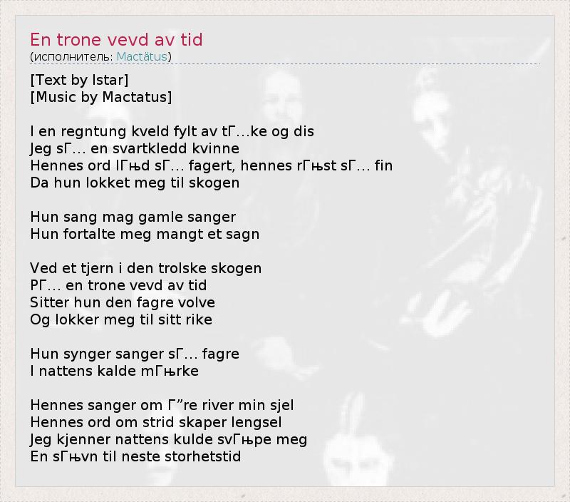 А как ты думаешь, о чем песня "En trone vevd av tid" ?