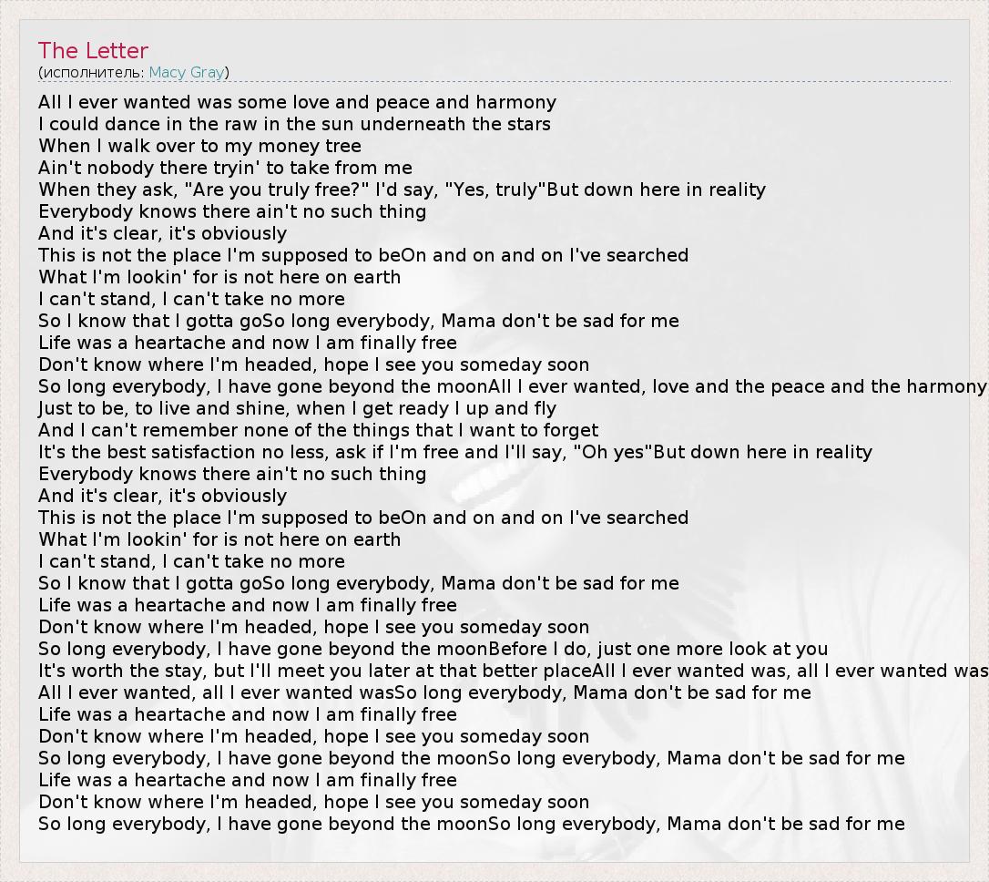All I ever wanted, all I ever wanted wasSo long everybody, Mama don't be sad for me