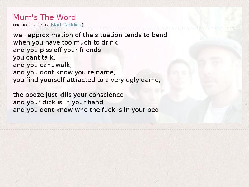 А как ты думаешь, о чем песня "Mum's The Word" ?