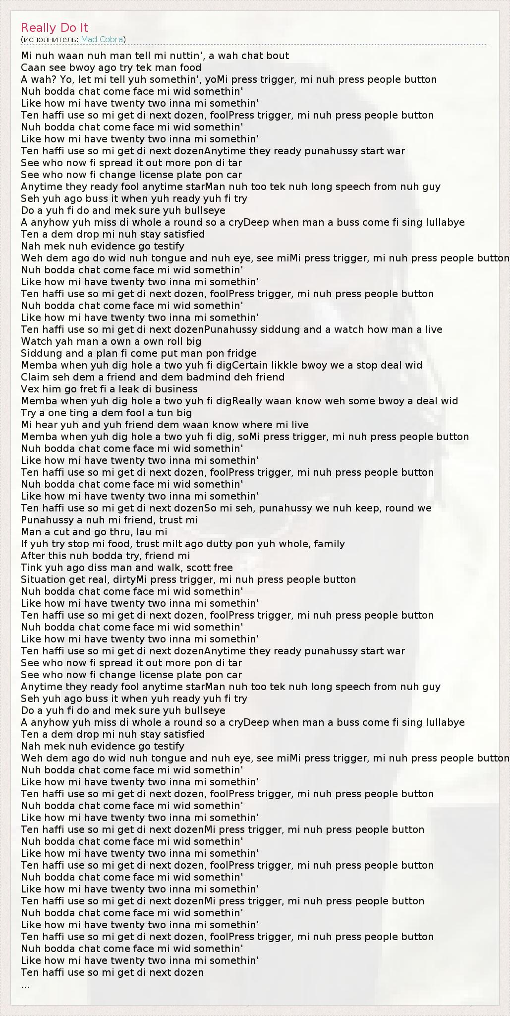 If yuh try stop mi food, trust miIt ago dutty pon yuh whole, family