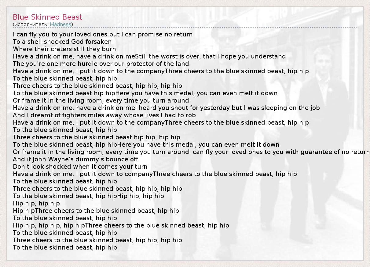А как ты думаешь, о чем песня "Blue Skinned Beast" ?