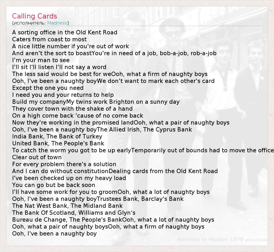 А как ты думаешь, о чем песня "Calling Cards" ?
