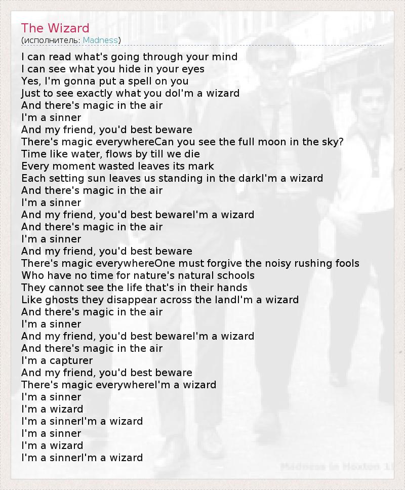 Like ghosts they disappear across the landI'm a wizard