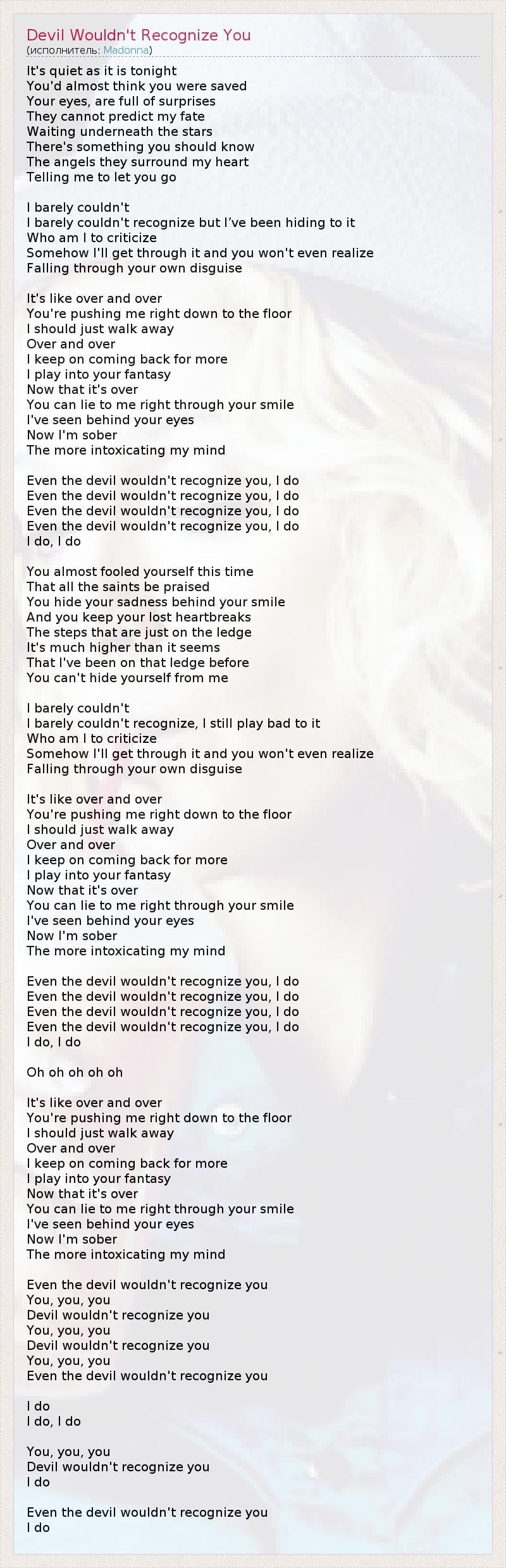 ГлавнаяИсполнителиMadonnaDevil Wouldn't Recognize You