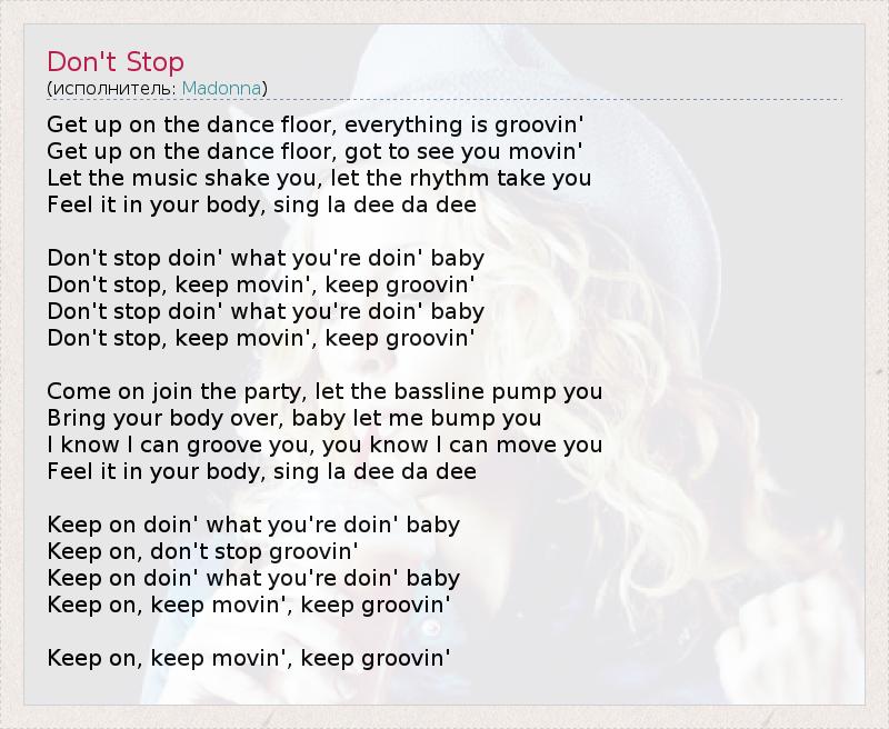 А как ты думаешь, о чем песня "Don't Stop" ?