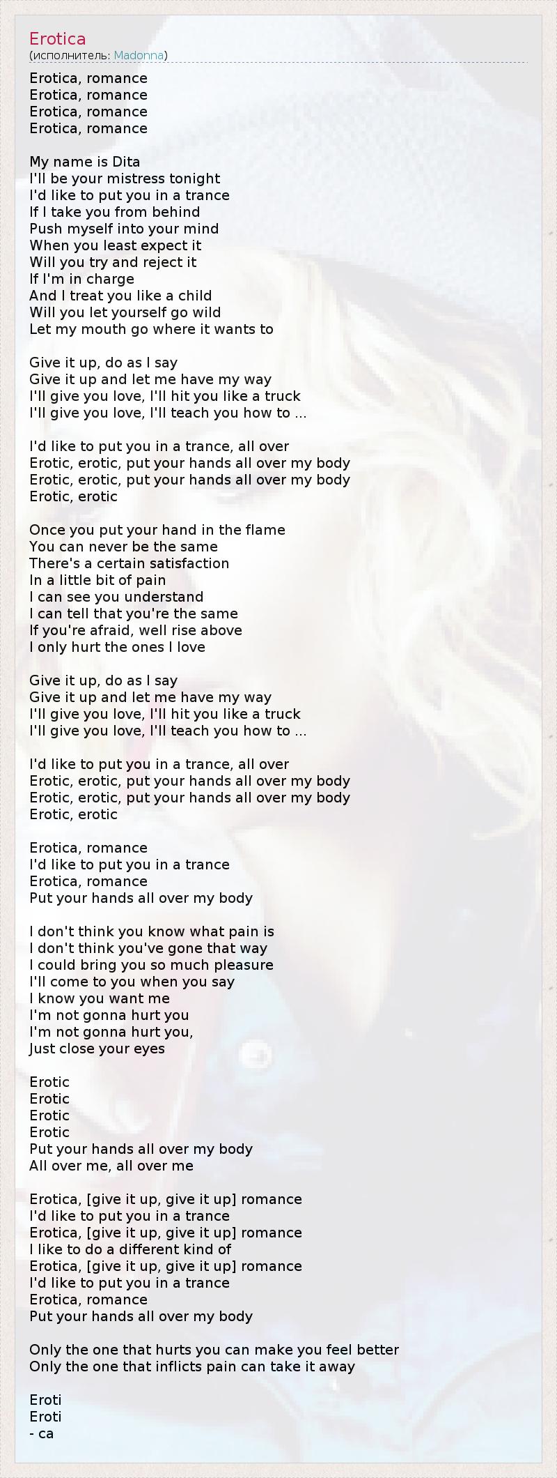 [Я бы хотела, чтобы ты был в экстазе ... всё это время]