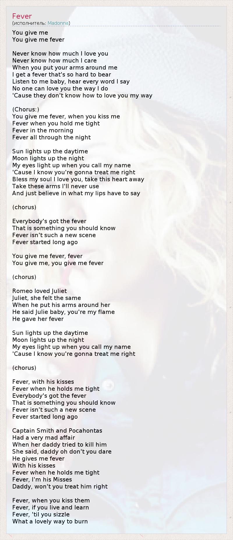 Fever — (Лихорадка) — знаменитая песня, написанная поэтами-песенниками Эдди Кули и Отисом Блаквеллом. Кавер-версия песни была сделана американской певицей Мадонной и стала четвёртым синглом, вошедшим в музыкальный альбом певицы 1992 года «Erotica».