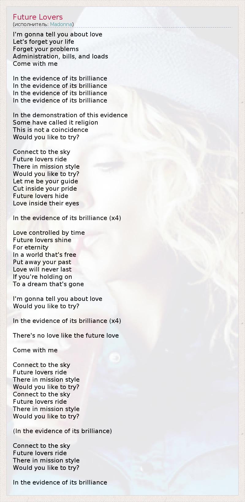 А как ты думаешь, о чем песня "Future Lovers" ?