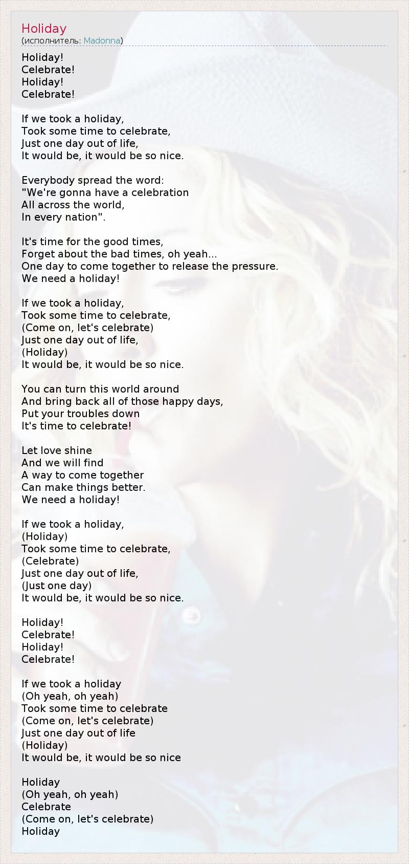 А как ты думаешь, о чем песня "Holiday" ?