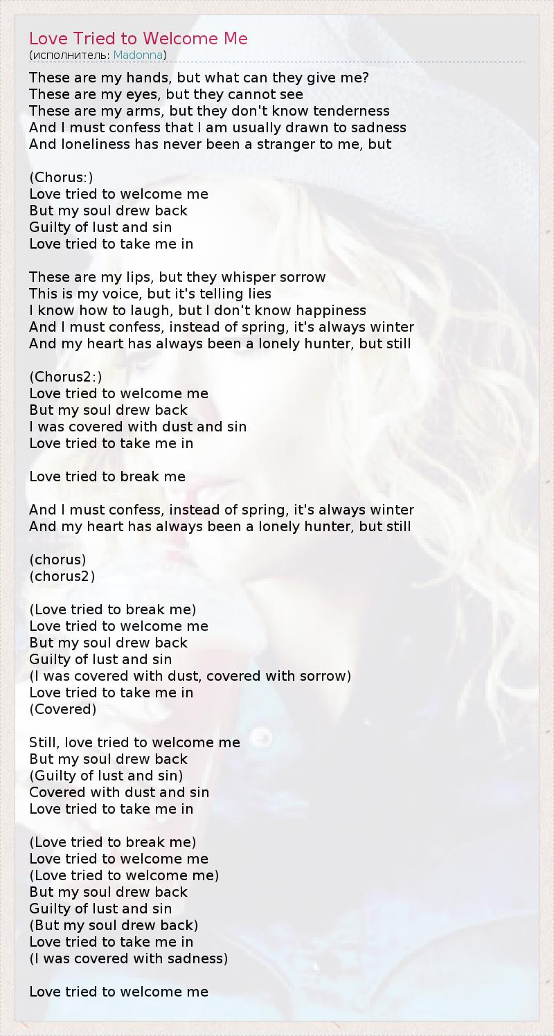 ГлавнаяИсполнителиMadonnaLove Tried to Welcome Me